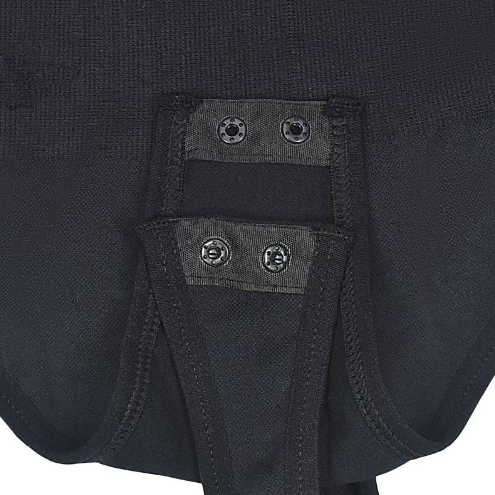 - Design: Long sleeves, U-neck, seamless finish, open-crotch with 2-button closure for convenience.