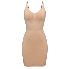 This Women Corset Midi Shapewear Dress features seamless, one-piece body shaping with mild compression for all-day comfort. The cooling function helps keep you sweat-free, while the adjustable shoulder straps provide a personalized fit. The deep V-neck enhances cleavage and support, giving a flattering silhouette. Made from skin-friendly, soft, and breathable fabric, this dress ensures comfort and style.